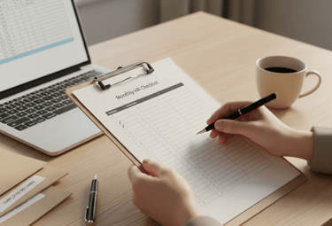 Audit intern al documentelor HR, verificare în concordanță de legislația în vigoare, pregătirea dosarelor pentru control ITM, actualizarea procedurilor și corectarea documentelor existente. Recomandat trimestrial sau anual, și întotdeauna înainte de un control anunțat.
